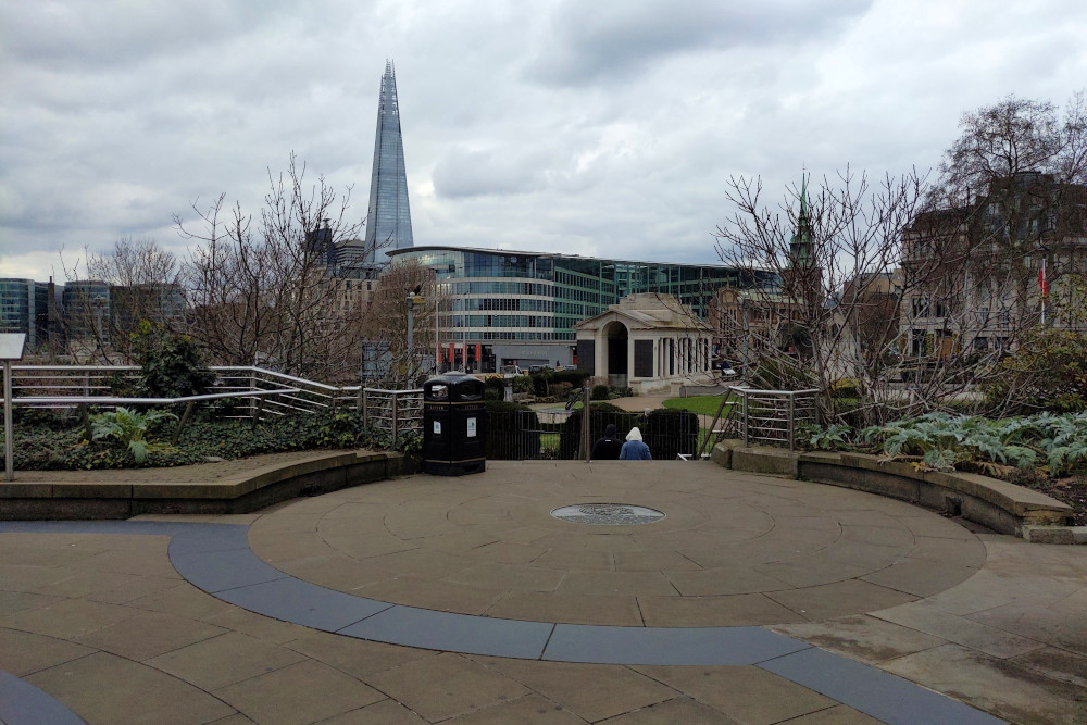 This is a good place above Tower Hill tube station which gives nice views of the surrounding areas.